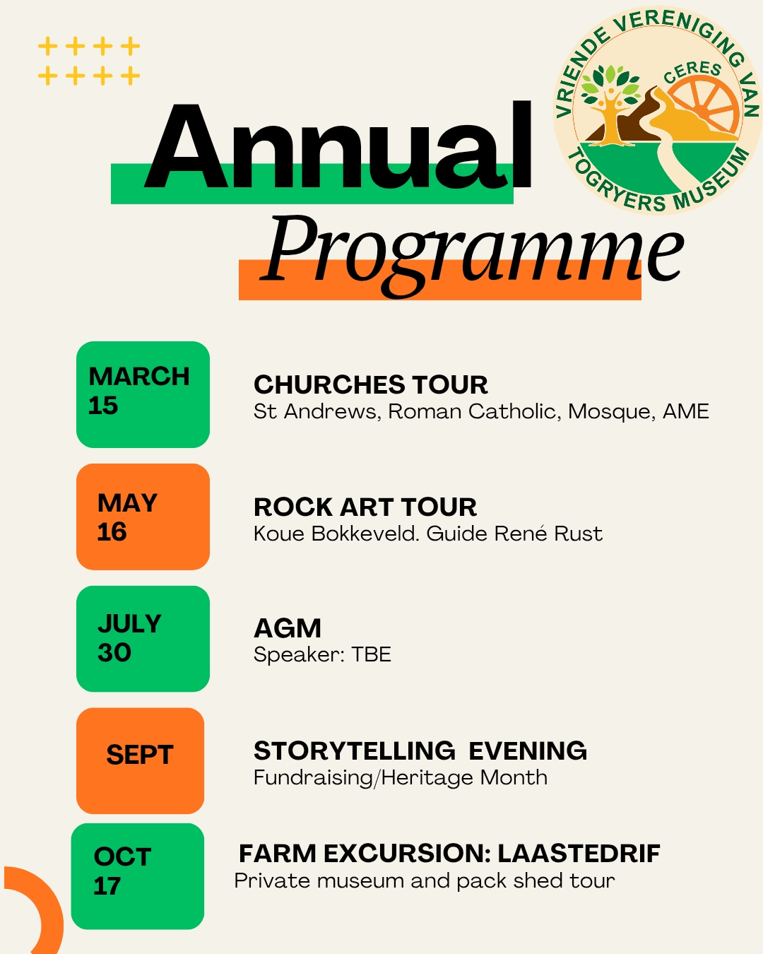 Om die Togryers museum te ondersteun is sy missie om die natuur en kultuurgeskiedenis van Ceres uit te bou en te bewaar.