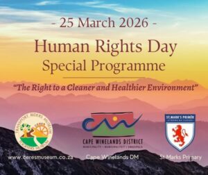 The Togryers museum, in collaboration with the Health Services of the Cape Winelands DM, will deliver an environmental programme at ST Marks Primary School in Prince Alfred’s Hamlet, to build awareness of environmental rights while emphasizing the responsibility each learner carries in protecting and caring for their surroundings.